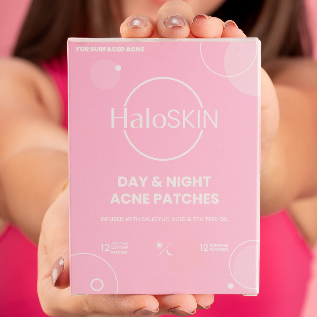 Say goodbye to stubborn breakouts with HaloSkin's powerful acne patches. Designed with 0.5% Salicylic Acid, Tea Tree Oil, and Hydrocolloid technology, our patches work invisibly under makeup while extracting impurities, reducing redness, and accelerating healing in just six hours. No more picking, no more scars—just clearer, healthier skin with every use.